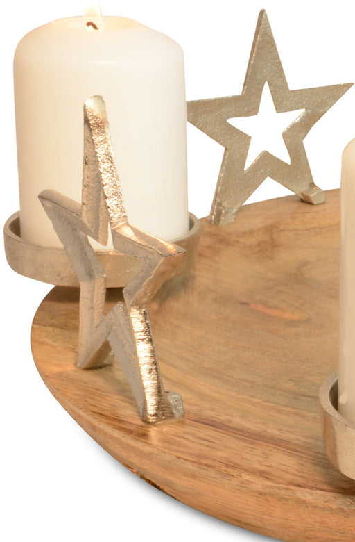Vollständige Details anzeigenHolz Adventskranz mit Sternen für Teelichter Ø 25 cm | 75219 - Silber Kerzenhalter