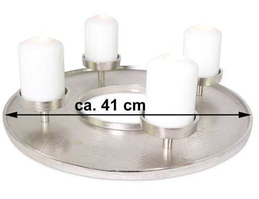 Adventskranz Kranzschale Ø 41 cm | Metall Silber | Kerzen & Deko | 74537