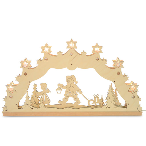 Original Erzgebirge Lichterbogen "Weihnachtsmann mit Engel" 55 cm | 13001