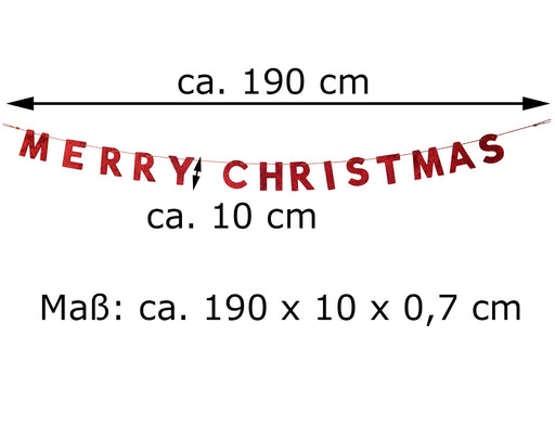 Vollständige Details anzeigenHolz Girlande mit Schriftzug "Merry Christmas" 190x10 cm | 12459 - Rot