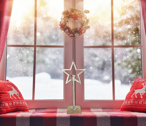 Vollständige Details anzeigenRiffelmacher Kerzenständer Teelichthalter mit Stern 73592 - Natur Silber 44 cm
