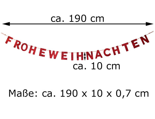 Vollständige Details anzeigenHolz Girlande mit Schriftzug "Frohe Weihnachten" 190x10 cm | 12458 - Rot