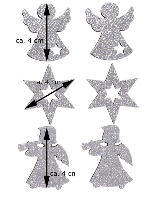 Vollständige Details anzeigenRiffelmacher Filz Streudeko mit Glitter ca. 4cm 70092 | Silber - Engel/Sterne