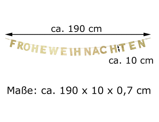 Holz Girlande mit Schriftzug "Frohe Weihnachten" 190x10 cm | 12454 - Gold