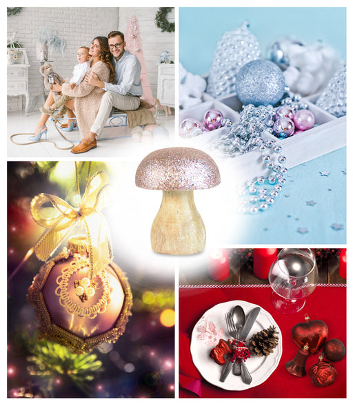 Vollständige Details anzeigenRiffelmacher Dekoration "Pilz" Mangoholz 74584 - 9 cm - Utopiaglitter Rosa
