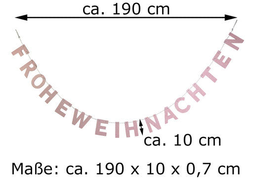 Holz Girlande mit Schriftzug "Frohe Weihnachten" 190x10 cm | 12456 - Rosa