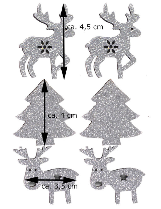Vollständige Details anzeigenRiffelmacher Filz Streudeko mit Glitter ca. 4cm 70092 | Silber - Hirsche/Bäume
