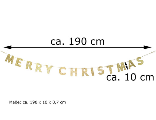 Vollständige Details anzeigenHolz Girlande mit Schriftzug "Merry Christmas" 190x10 cm | 12455 - Gold