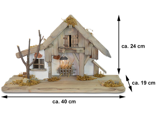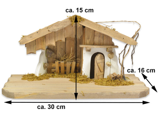 Krippenstall Weihnachtskrippe "Kötzing" 30x16x15cm Naturfarben Hütte | 78103