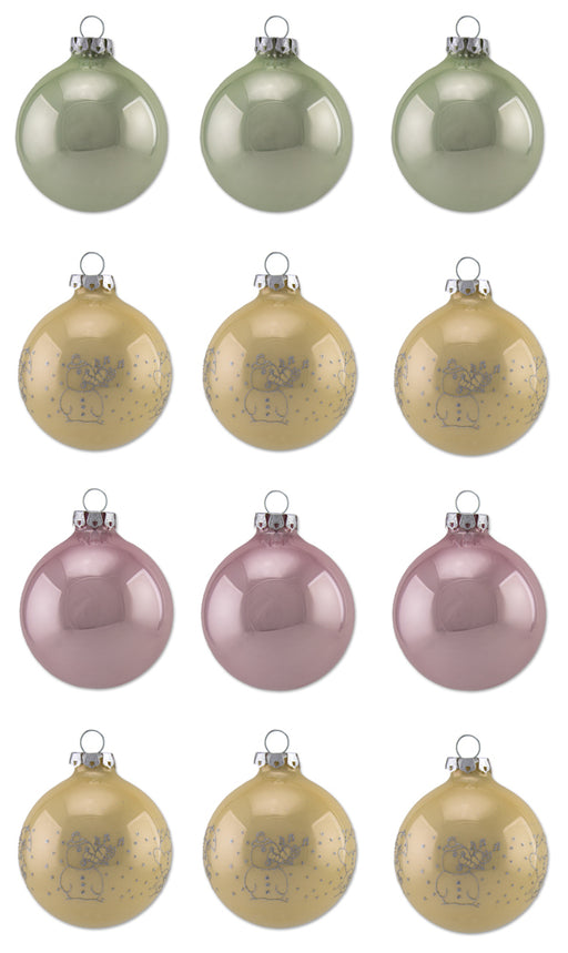 Vollständige Details anzeigenThüringer Glasdesign Weihnachtskugel-Set 6cm 12-tlg. - Pastell mit Glitzer Dekor lustige Schneemänne