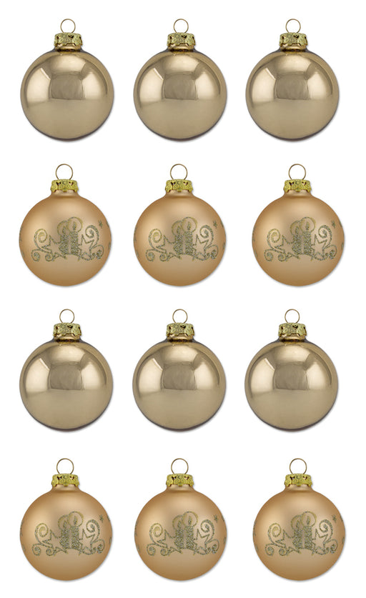 Vollständige Details anzeigenThüringer Glasdesign Weihnachtskugel-Set 8cm 12-tlg. - Gold mit Glitzer Dekor Kerze - A012-0808-1340