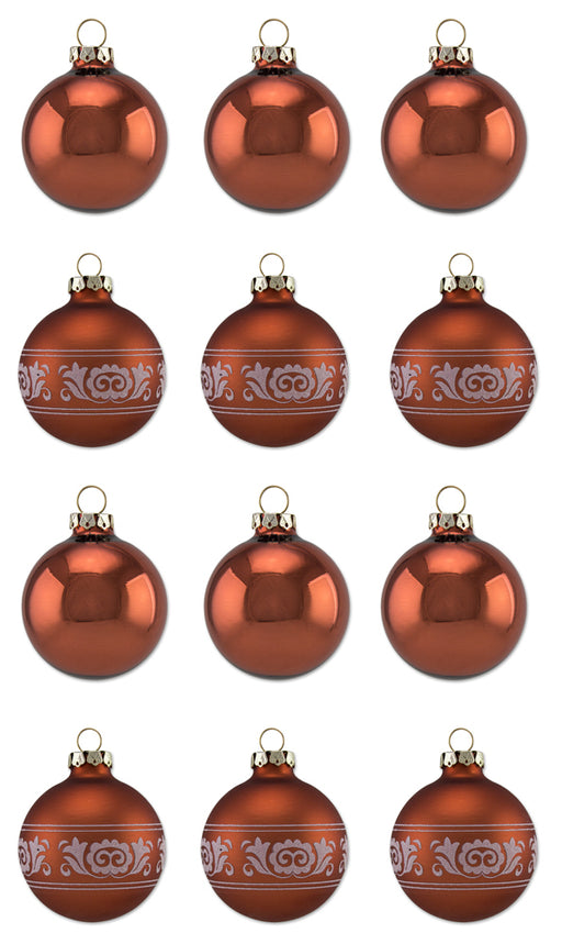 Vollständige Details anzeigenThüringer Glasdesign Weihnachtskugel-Set 6cm 12-tlg. - Kupfer mit Glitzer Dekor Romantikbordüre - A0