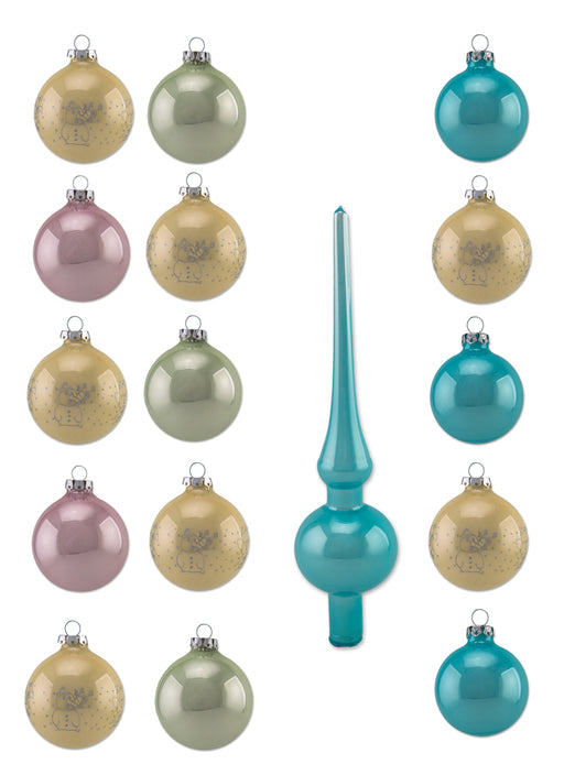 Vollständige Details anzeigenThüringer Glasdesign Weihnachtskugel-Set 16-tlg. - Pastell mit Glitzer Dekor Lustige Schneemänner -
