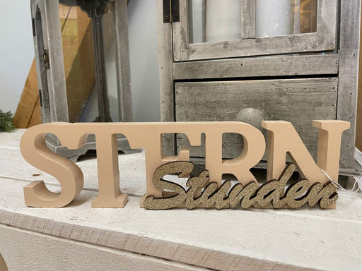 Vollständige Details anzeigenDekoschriftzug "Sternstunden" aus Holz 29,0 x 8,0 cm - 19134 | Rosa / Gold