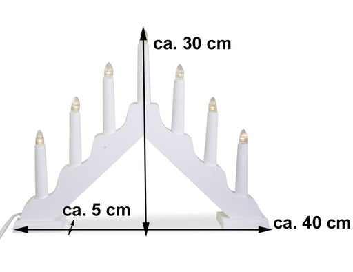LED Schwibbogen Lichterbogen mit 7 Kerzen 40x5x30cm - Weiß | 76040 - Fensterleuchter Holz
