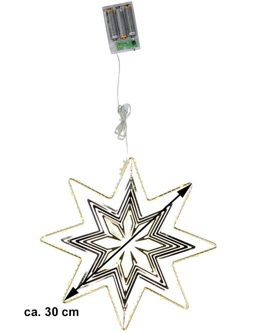 Riffelmacher & Weinberger• Wunderschöner 3D Leuchtstern aus Kunststoff, warm-weiß beleuchtet, mit 18 Spitzen • Inklusive Lichterkette mit 40 LED´s • Durchmesser ca. 60 cm, ...