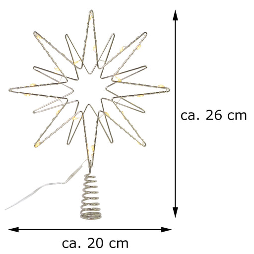 Vollständige Details anzeigenRiffelmacher Baumspitze Doppelstern mit LED Beleuchtung 17758 | Silber 20 x 26 cm